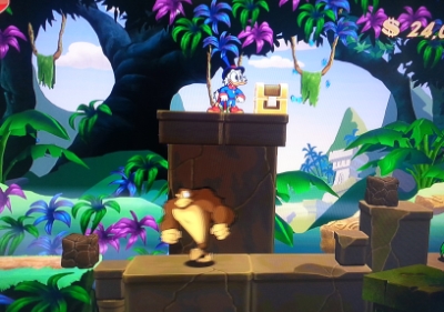 The graphics are absolutely amazing, while still holding true to the gameplay of the original.  The movement animations are mostly the same, but cleaned up and more fluid.  Most of the action noises lift the original soundbites from the NES game like Scrooge getting killed, climbing ropes and jumping.  It’s like the version we saw as children in our heads when the graphics were still a long ways away from not looking like a backseat covered in ice-cream throw-up.