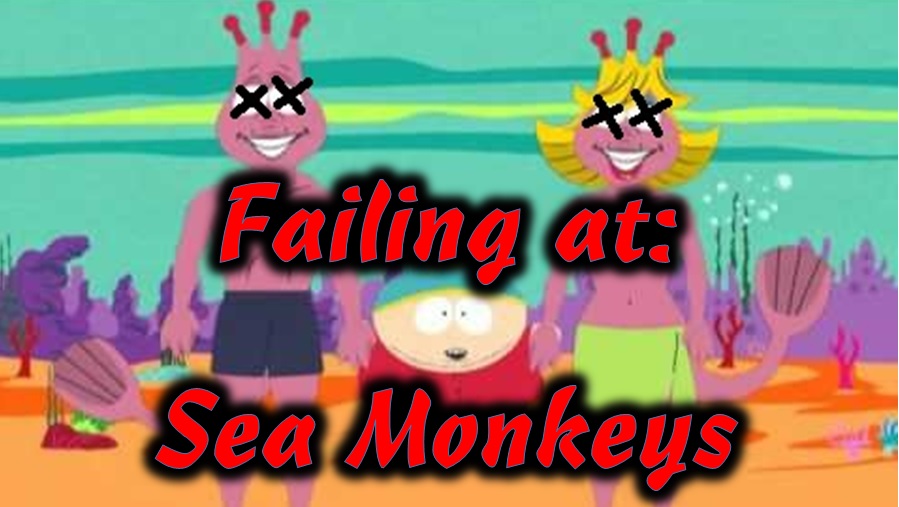 I had Sea Monkeys once as a kid and found them to be …..underwhelming at best. They were microscopic and boring, and only lasted a week or two until they accidentally lost their habitat and ended up as grape Kool-Aid. But they have been using state-of-the-art technology for the last two decades to genetically engineer this new breed of Sea Monkeys to be massive and predisposed to be constantly horny, focused on breeding the next generation.