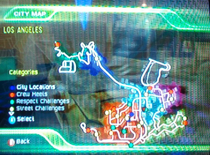 Street Racing Syndicate: There’s a tiny little map that is centered around your base of operations which include a dealership, a garage, and a warehouse that is used to store your legion of bored girlfriends (you only have one shotgun seat, dawg!). Instead of sticking to anything resembling reality, the street map has seven cities smashed together, and you can drive from Philadelphia to Los Angeles in less than six city blocks, which is actually a pretty awesome feature if you are an Eagles fan. There’s nothing really visually different about the “cities”, so I don’t understand why they bothered going with that whole idea. The onscreen mini-map is mostly useless, and has nothing labeled as you drive slooowly along it’s streets. Luckily, there is the option of quick travel, which (thankfully) limits the amount of driving you have to do while driving in this driving game.