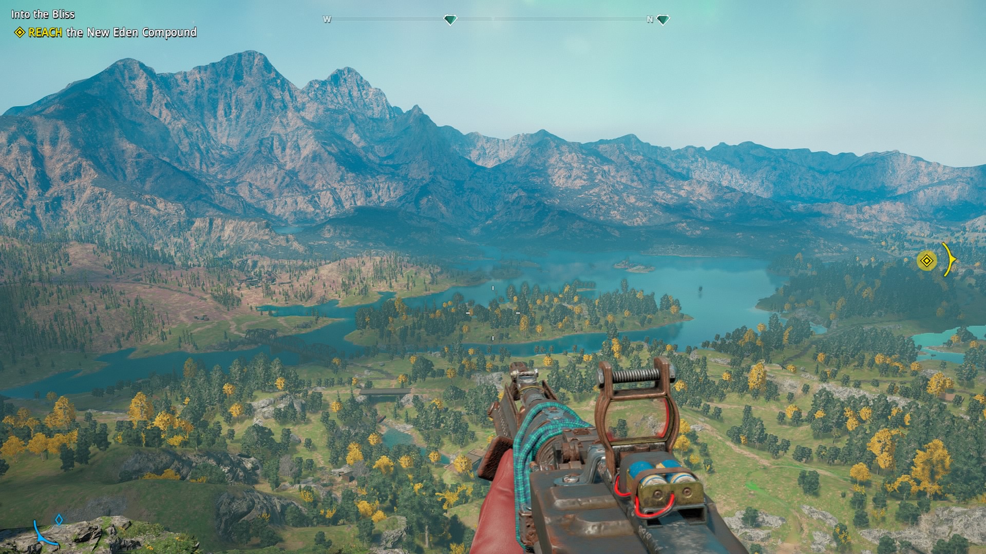 For New Dawn, you play as a Captain in some sort of “re-build it” task force that travels across the country restoring civilization. Working in what comes off as a heavy-handed mirror to your heroic group of good eggs are the Highwaymen: a Mad-Max style group of baddies that also cross what’s left of the United States acting like raiders. Heading the Hope County chapter of the baddies are twin sisters Mickey and Lou. The pair within a vacuum do a good job in their “I AM THE FAR CRY BAD GUY” dynamic, however this brand of villain is growing tired. Ubisoft is doing a lot of commendable work into diversifying the background and appearance of villains and characters alike, however the actions of said villains have continued the trend of being one dimensional. If you’ve played any of the last handful of Far Cry games you know what’s coming: bad guys crossing your player’s path multiple times with non-interactive cutscenes doing reprehensible shit while laughing, and of course that makes you hate them. The concept is tired, and it’s time for a change. A more welcome familiarity however, are the characters that are fighting on your side. More than a couple companions and resistance fighters from the Far Cry 5 story make a return, and their progression in the last two decades make for some genuine reflection if you’ve invested yourself in the last game. Interestingly, your first companion is a direct descendant of a family you assisted in last time around, born the very day that the bombs fell.