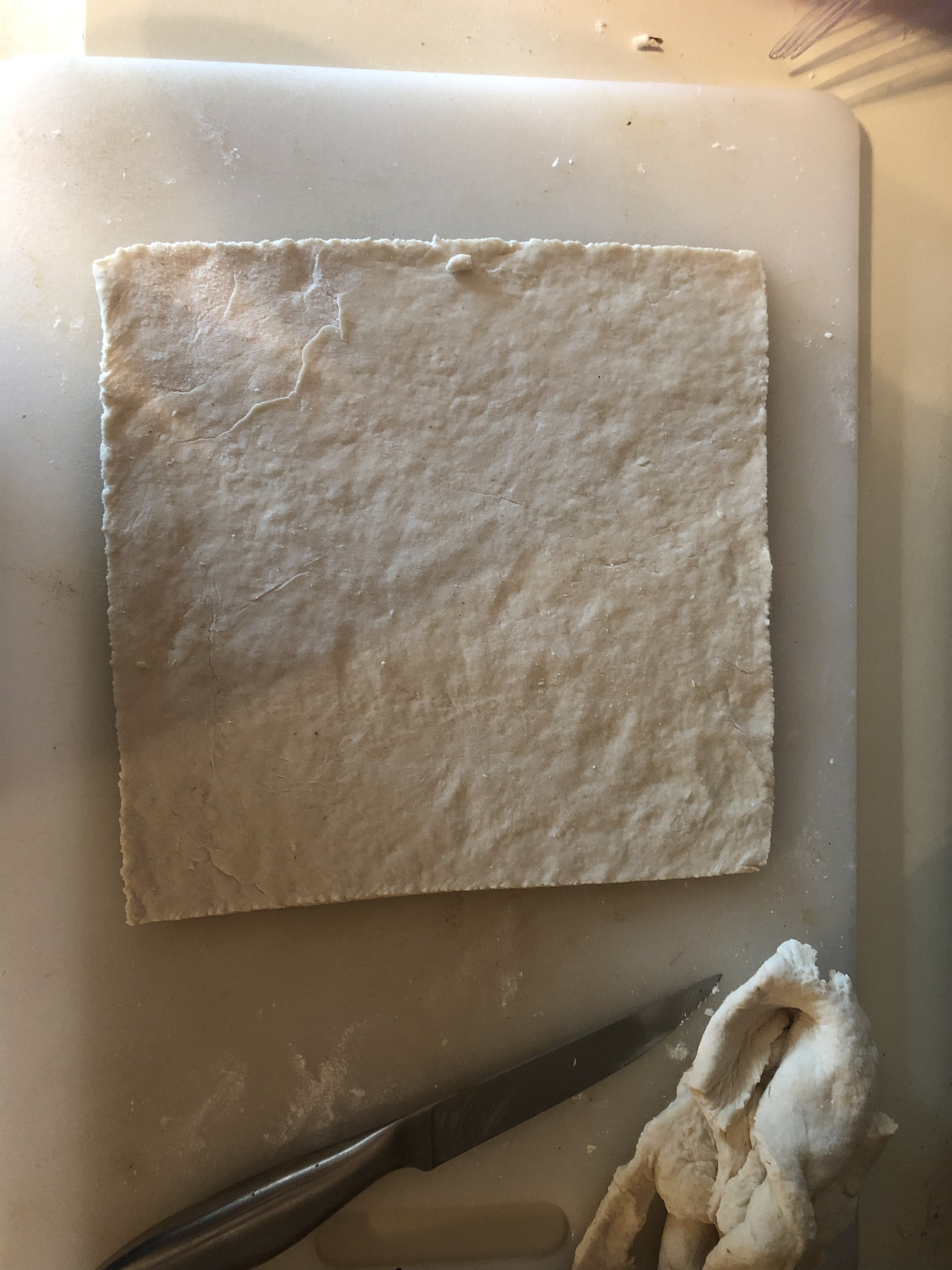 For the first edition of “Matt the Civil War Chef” we need to start with the most basic Civil War food of them all, Hardtack! Hardtack dates back to the 1700s however it’s best known in American history for its contribution to the war. Dense, flavorless, and frequently remarked by soldiers that it could stop bullets, Hardtack was consumed widely but rarely ever enjoyed. Both sides of the conflict utilized Hardtack in their bags for its duration of the war, as it’s probably the simplest food to make in the history of the universe. All you need is flour, salt, and a little bit of water and you have a hardy dough fit for a fighting man. Spread it out to about a quarter inch thickness and make it into a big square.
