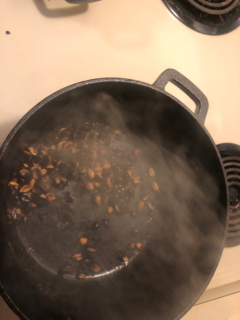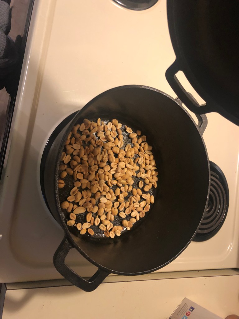 Confederate Coffee (or tea depending on the source) is another great monument to the desperation of the troops during the American Civil War. In short, it’s coffee that’s brewed from peanuts. Coffee was the drink of choice for both sides during the war. However, as we’ve discussed previously, the South had to make due with what they had, and peanuts were something cheaper and far more bountiful than coffee beans as the war progressed. I can’t find any evidence that says the Union didn’t drink this as well…but for the sake of alliteration alone, I prefer the name to stick with the Confederacy all these years later. The process for coffee back then was just as simple as it was horrid to drink: beans and water in a pot, boil it and hope for the best. While that would be simple enough to try, hot peanut water probably won’t give us the right idea in regards to how this would have actually tasted. After consulting some recipes, it was decided to roast these nuts in our trusty dutch oven to get them nice and crisp…