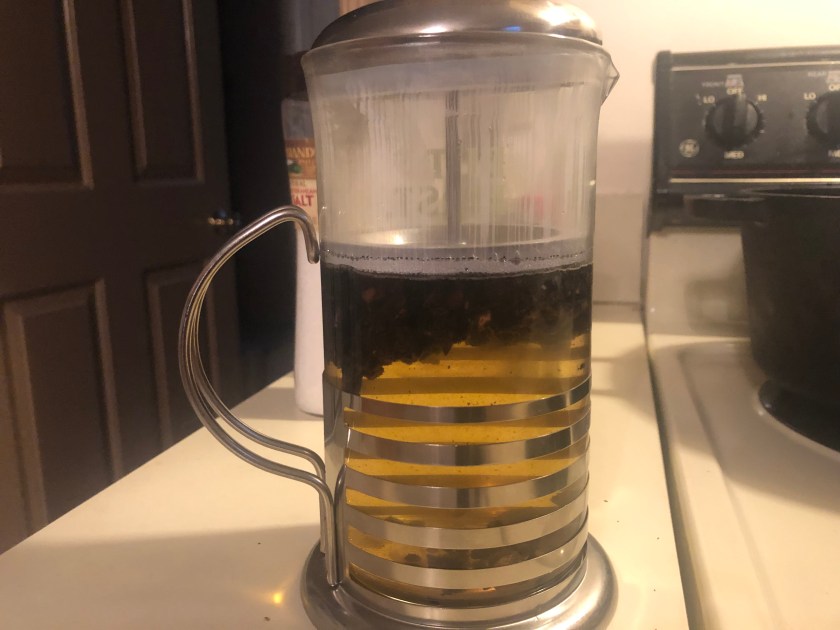 I have never used a french press before, and I was forced to as my wife gave a strict, sweeping ban from the use of her Keurig. The grounds and hot water were left to steep or brew for about ten minutes as I cleaned up the mess from all that charring and smashing. I kept a bag of regular pre-roasted nuts smashed up in case this ended in disaster. However after pouring a cup of this in a glass, I was quite honestly surprised…