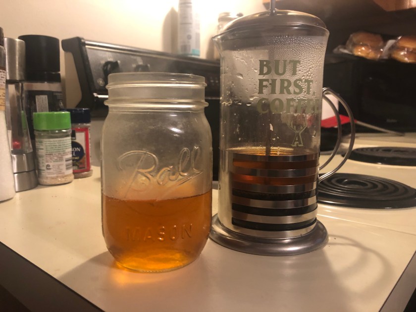 I don’t really know what brewed peanuts are supposed to smell like, but this seemed to fit the bill. There was a pleasant aroma, and it was a far smell better than the nuts that came out of the pan fifteen minutes prior. I was nervous for a taste, and after my wife refused to so much as even smell the mason jar I took the plunge. To be quite honest, it wasn’t that bad. There’s a distinct taste different to that of a coffee drink, but at the end of a full sip it tastes a bit like a weaker version of java. When badly in need of a replacement of the drink that’s been keeping you alive in times of war, this could more than stand up to the task. It will be interesting to see if more nut grounds, or better preparation will make for a better taste, especially as the concept alone isn’t a deal breaker. I even iced some down for an iced coffee version, and there was a unique new bitterness that came about from that approach. I’d encourage readers to try your hand at Confederate Coffee, and see if we can find an even more proper substitute for decaf.