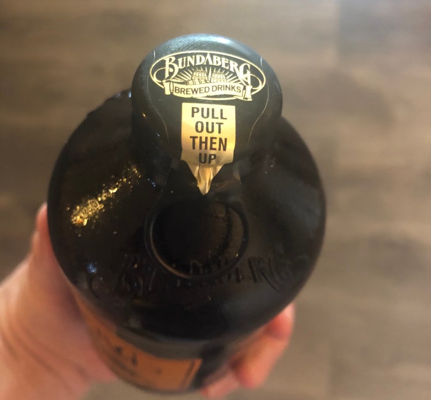 At first glance, these bottles are awesome! The medicine bottle shape and thick weight with the old timey look to the label is something missing from even the most smug of craft sodas produced in America. The sacrifice for this cool look though seems to be at the simplicity of opening the damn thing. The ritual that is required to taste a Bundaberg is a curious one. For starters, there’s no mere “cap” to unscrew or pop off, as the top is secured by an open tab over a plastic fitting with instructions openly taunting new drinkers on the cap wrapper. Before you can “pull out then up” it’s important to consult the front of the bottle as well. “Invert bottle before opening.” What the shit else do I need to do before I can taste this stuff? We began our tribal ritual of turning the bottle slowly upside down and back right side up, careful not to wake the carbonation spirits from their peaceful slumber. After bringing the bottle back to home position while standing in the living room my wife immediately ordered me to the kitchen sink to complete the task. The good people at Bundaberg were very considerate with this design, as only a mere third of the liquid from the bottle splashed out onto my shirt. This wasn’t from the carbonation mind you, but rather from jerking the bottle around thinking this was like opening a bank vault. Now that the hard part of the process is out of the way, what’s this stuff even taste like?