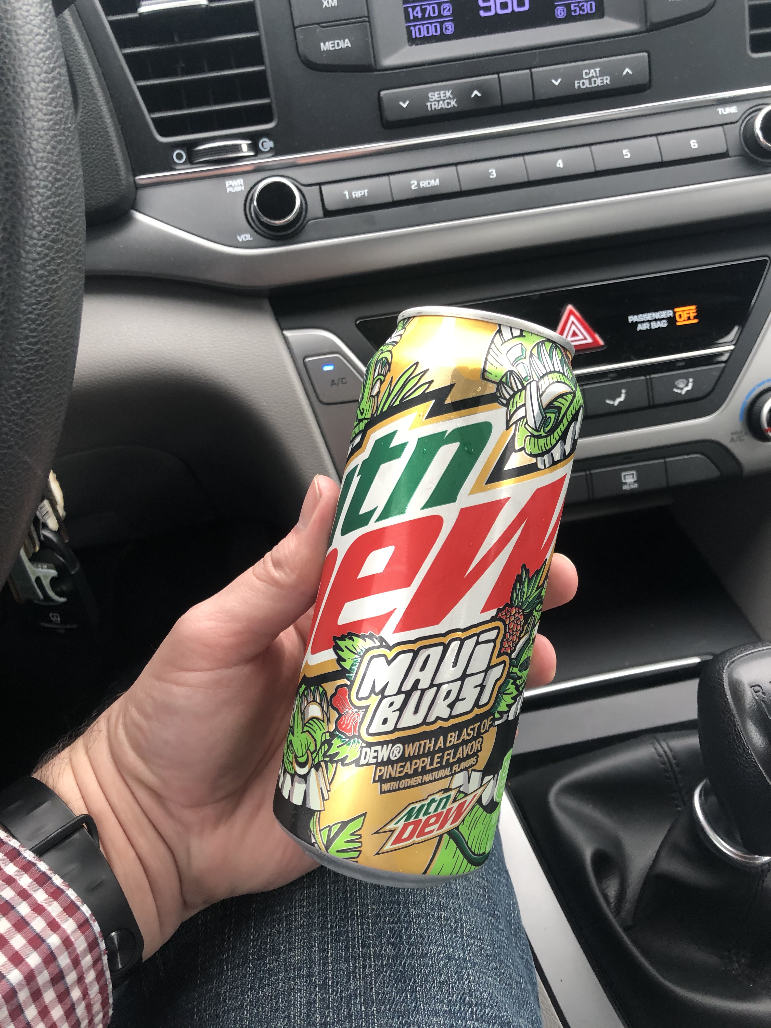 I take great pleasure in drinking out of a 16oz “tall boy” can, but Mtn Dew can be a little much to drink entirely in one sitting. Despite not being able to reseal the can, I decided to give it a shot while working the day job at my desk. The smell is distinctly pineapple, and the taste follows up on that nicely. Fruit flavored sodas typically have a hard time getting around the sickly sweet taste that leaves both my mouth disgusting and my day ruined. For the Dew however, the fruit taste was smooth with just the right amount of fizz. Think of it as a Fanta or Crush Pineapple that’s been done the right way. But while smooth, it’s still Mtn Dew… so prepare to take a voyage.