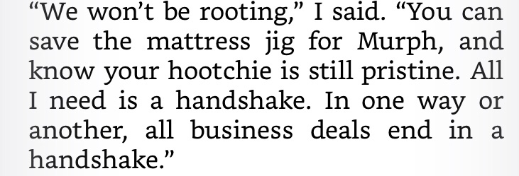 …alright, so Mr. Big’s antics aren’t going to win any high manners honors, but he’s certainly not after them in the first place. Mr. Big walks us through about a half dozen scenes, that while all benefiting the same Big man, they each show some range in sexual content. Running down the list we get hand play, oral, MMF, quid pro quo intercourse, a dash of lesbian play, and…one other moment we need to touch on. For the lion’s share of the story, the sexual exploits were packed full of steam, and yet it manages to be kept light hearted by all the old-timey lingo that thoroughly saturates every interaction. All of this works just fine, that is, until the final scene. The author decides to take a chance with the last piece, exploring some non consenting peril that eventually turns into some post-abduction semi-consenting BDSM. I truly believe in the effort here, and I’d be hypocritical to dismiss the content based on other works that walk the line in this area. I think my only trouble is the near comedic whimsy which I held for the rest of the story. With the “dames, rooting, and mattress jigs” I forgot that we’re dealing with a character who’s more often than not breaking the rules, and isn’t someone to look up to as a moral compass. Any concerns with the finale were quickly dashed however but discovering the detailed glossary that explains all that crazy jargon we just read about…and perhaps more importantly some musings from the author about character and setting design. I’ve never had an author take a page and a half to explain their debate for a character potentially having their foreskin, but I feel like I’m a better man for it now.
