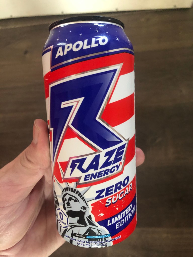 The H, is for (H)ydration. With most energy drinks there’s very little need to talk about hydration properties, as they either don’t care or your tongue will feel so dry that you’ll be pounding water merely for self-preservation. Raze promises to be the “most refreshing energy drink on the planet” and to be honest, I see no need to dispute it. Electrolyte miracles aside, being the most refreshing energy drink is like being the best Sushi Chef at Fuddruckers…it’s not playing the same game, but you should still give credit where it’s due and all that. The final flavor, Apollo, is red-white-n-blue blazed with Lady Liberty in a friendly appearance that makes you love America in the most ironic way possible. The taste screams blue as well as there is a blueberry front on the sip that’s trying to remind you of something. Hmm…star spangled cans…delicious yet mysterious blue liquid inside? Holy Shit! Apollo is the Liberty Brew of energy drinks, and I mean that in the best way possible. Clearly this is the best Raze has to offer, and it’s a great finishing point to provide a Mtn Dew style experience without the foreboding sugar shakes that come with repeated soda consumption.