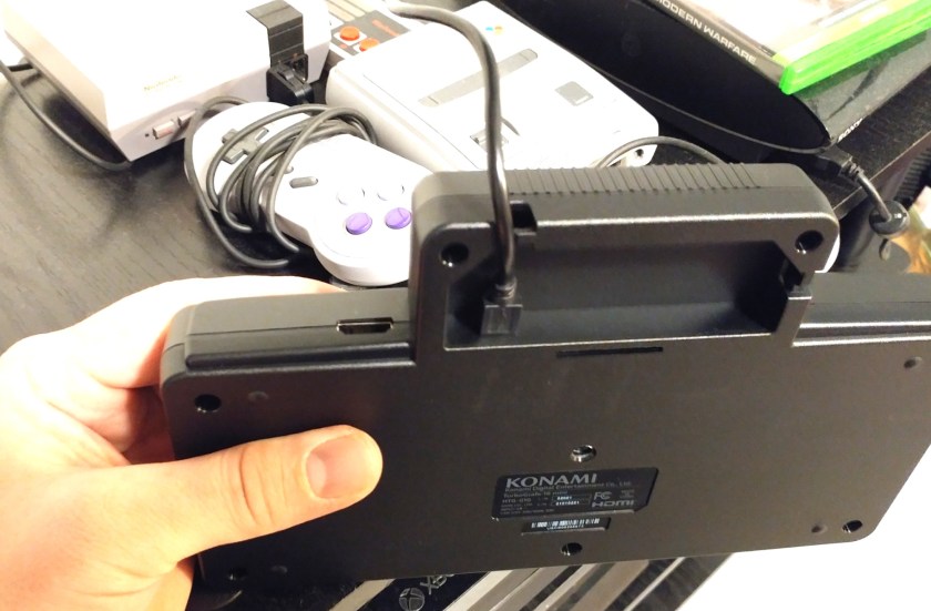My system was packaged carefully and cleanly inside the box. It came with a power cord (with no fucking wall adapter??) an HDMI cable, a system and one controller. I don’t know why the little outlet block is so cost preventative that they chose not to include it with a $100 mini console? Rant aside, I ended up using the one that WAS PACKAGED with my $20 Playstation Mini. So the incomplete power cable thing is stupid, but where it plugs in is downright insulting. I get that it’s neat to keep it looking like the real thing (mounted inside the fake expansion shell on the back) but my God it was an absolute bastard to try to line the power cable up correctly inside about a 1/2″ space of clearance. The other cable input (HDMI) is thankfully out in the open. Once these are all plugged in, put some Saigon Kick on your LP player and get ready to rock out like it’s 1990 all over again.