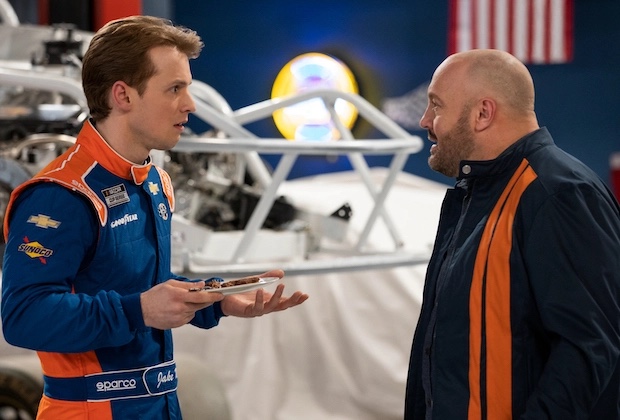 Alright, so not the most creative idea, and one we have seen many many times before in racing fiction. It also sucks that there’s a laugh track, but I’ll try not to focus too much on the late 90s sitcom features. The episode premises stay within the confines of a race team, but this should NOT be considered a proper “racing program,” more like a sitcom with a racing set dressing. Sure, they’ll talk about what happened in yesterday’s race or use a word salad of NASCAR-y terms to push the story along, but it’s really more about the interpersonal relationships of this small cast. After watching about 5 episodes so far there have been almost no racing scenes, but that’s probably a good thing as there’s no lame recreations of a race to critique or shotty camera work to complain about. This is a show that knows what it is and more importantly knows what it is not. The cast of characters are good for a laugh, especially if you make peace with what’s going to be delivered. That’s a very important notion by the way, as you might get frustrated with the racing storylines without that distinction. I’m not a film or television expert, but it is very clear to me that race fans didn’t write this series. While technically proficient, the dialogue and racing references used show a text book regurgitation of NASCAR vernacular, but not a true comprehension of it. For example, as Kevin is talking with the retiring team owner, they reminisce about the past successes of the team. Kevin remarks that a few years ago the team “opened the season winning Daytona” which while a technically correct phrase, the sentence would sound much different out of the mouth of an actual racing guy. Tampa Bay didn’t “win the game at the end of the NFL season,” they won the big game/Super Bowl! This isn’t the only example of that sort of thing, and it doesn’t bog down the flow of the program, but if you’re looking for the heart and soul of racing put into comedic form, quite frankly Talladega Nights laps this attempt 5 times over.