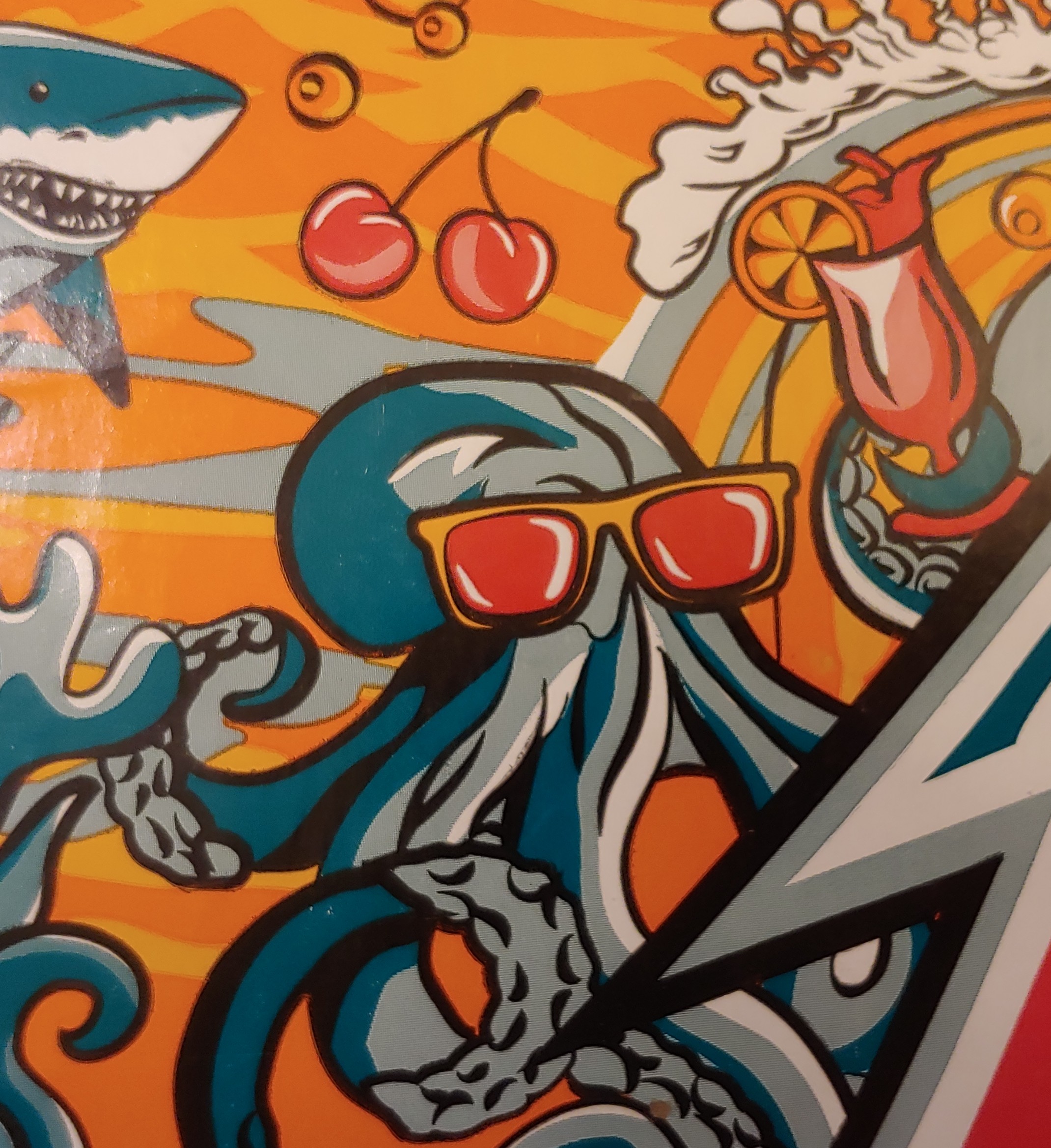 Box Art: Baja Punch comes in a dark orange box that is covered in cherries, oranges, octopi and jellyfish. Everybody on the box is wearing cool shades. Nobody can genuinely hate on a jellyfish wearing some really cool shades. The baja blue color of the lettering and artwork pops harder off the orange background since those two colors fucking hate each other on the color wheel.