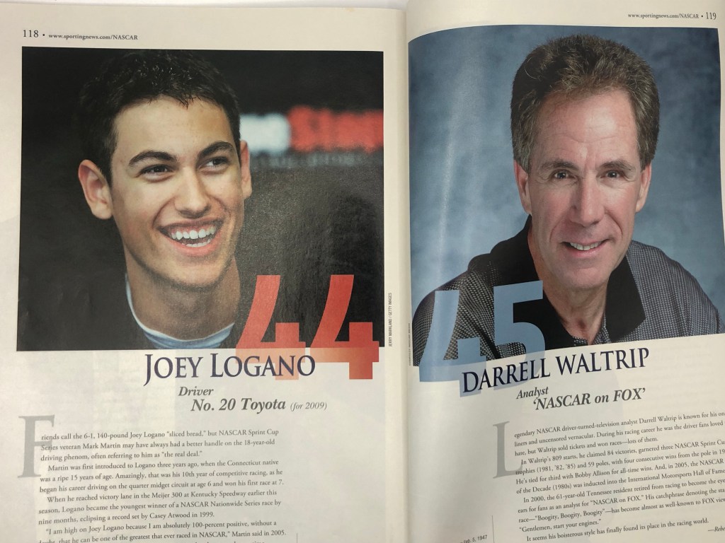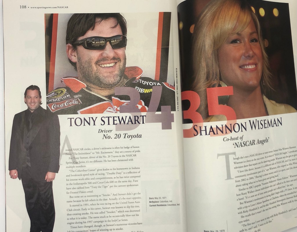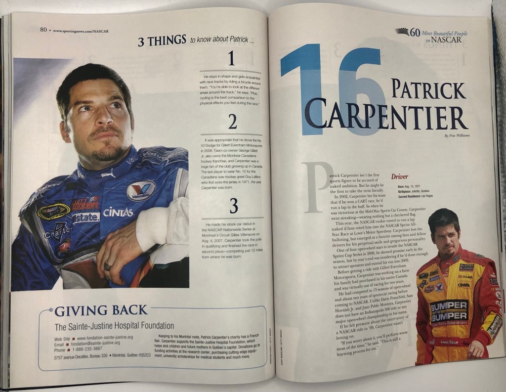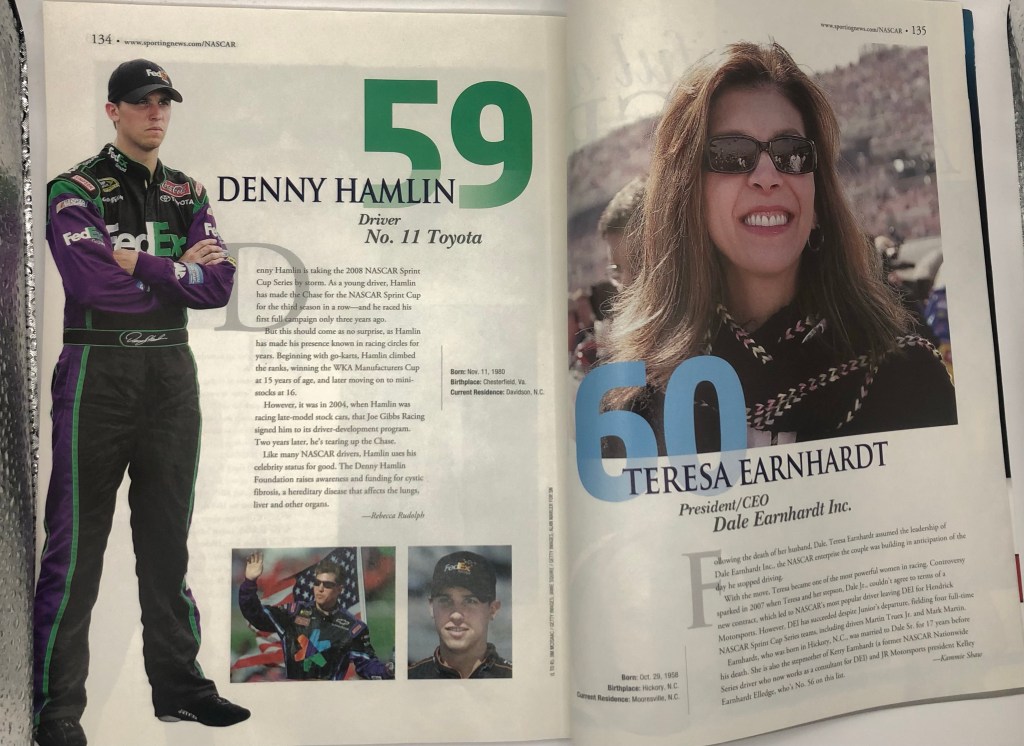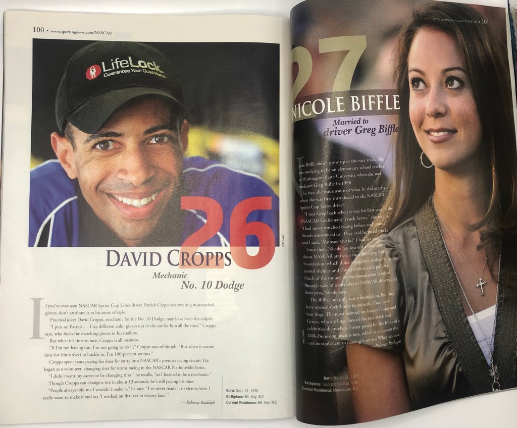 In 2008 Sporting News put together a special magazine called the “60 Most Beautiful People” in NASCAR, to help commemorate the 60th anniversary of the sport. This was a strange time in NASCAR history as the Brian France regime was trying a lot of new corporate synergy to get the brand into the mainstream (for better or worse). I remember thumbing through the magazine at a Walmart back in 2008 but not purchasing it, and wholly not thinking about it until now. After Deb Broadwater’s article on NASCAR’s attempt at romance novels, the memory of that WalMart evening came flooding back. I took to eBay and got myself a copy.