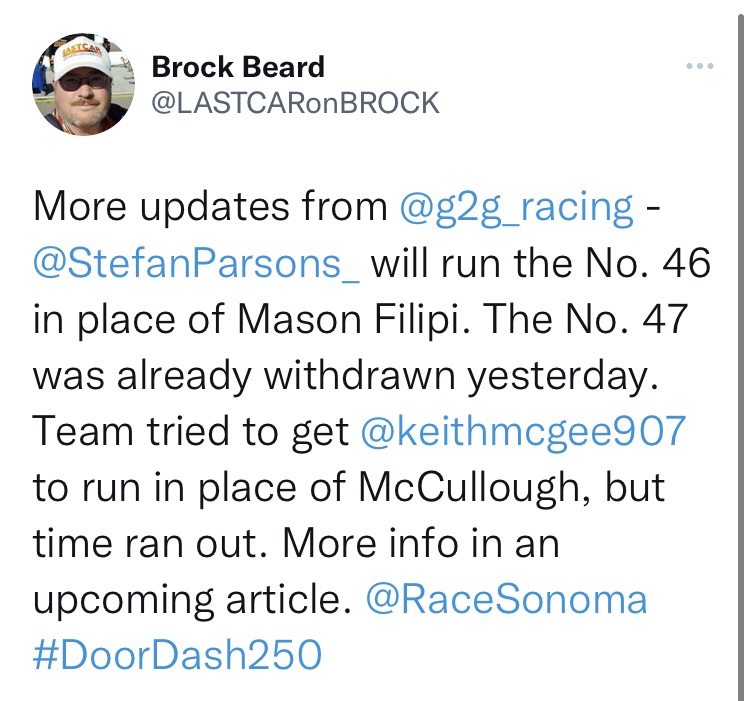 Travis McCullough, whom was just last week a relatively unknown face in NASCAR racing is already being approached about seat time for other teams in 2022. “I’ve had over 100 calls on this since Friday, and while some of it has been about the problems with G2G, it’s been about other opportunities as well. I’ve talked with some guys from Reaume Brothers and a few other teams…you find out who to trust in this business the hard way sometimes, but that’s what makes you stronger. I don’t like what happened, but this might just work out better.”