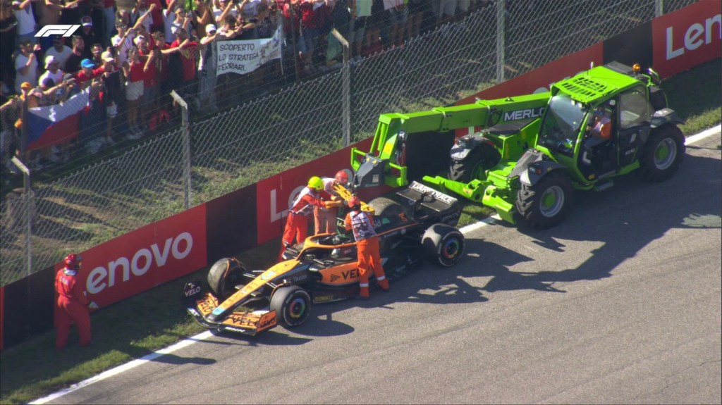 Daniel Ricciardo on Lap 47/53 stalled on the track with a mechanical failure, rightly requiring a full Safety Car caution. While this was certainly an unfortunate end to the struggling driver’s race, a further wrinkle from the failure caused still more misfortune to the end of the Grand Prix. Ordinarily, a stalled car could be pushed off the circuit by the corner marshalls, however Ricciardo’s McLaren was stuck in gear requiring the service of a tow crane, adding time to the requirements of a safe clean up. Hampered still further by the Safety Car picking up the wrong car requiring another whole lap of grid sorting, time was at an absolute premium. As the laps ticked off with no time to wave around the lapped cars…and with the taste in our mouths from Abu Dhabi still sickly and ashen, the race was not resumed and Max Verstappen was confirmed as the Italian Grand Prix winner.