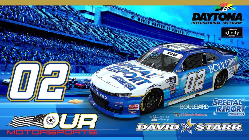 The David Starr piloted 02 will be sponsored at Daytona by long time Starr partners Bret Baier and his “Special Report” television program on Fox News as well as Boulevard, a tech-enabled mentor system.